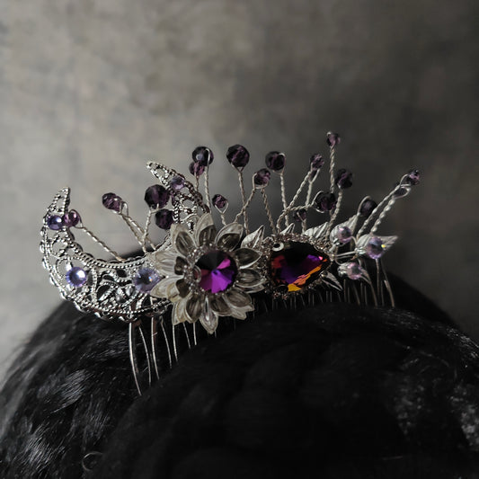 Dekorativer Haarkamm "Sichelmond" in Violett