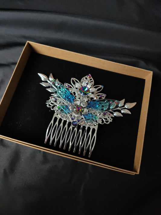 Dekorativer Haarkamm mit Feenflügel in Blau