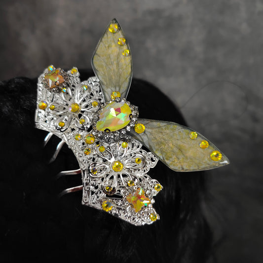 Dekorativer Haarkamm mit Feenflügel in Gelb