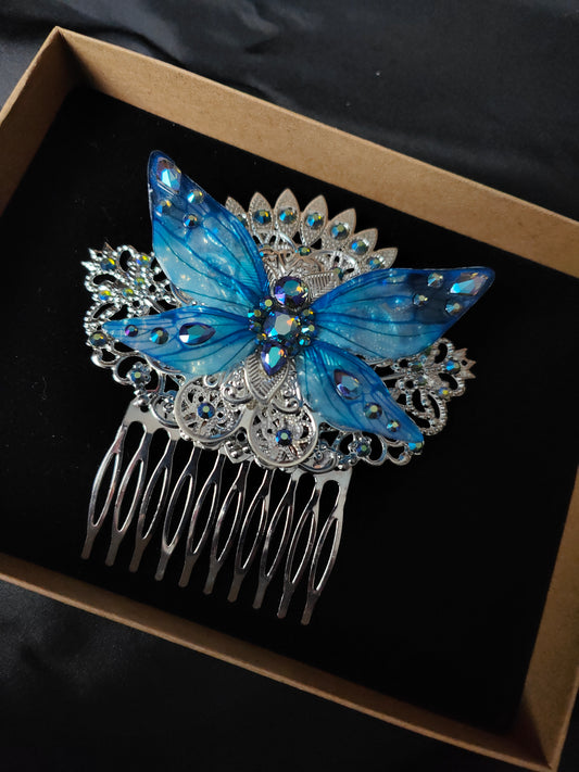 Dekorativer Haarkamm "Fairy Wings" in Blau