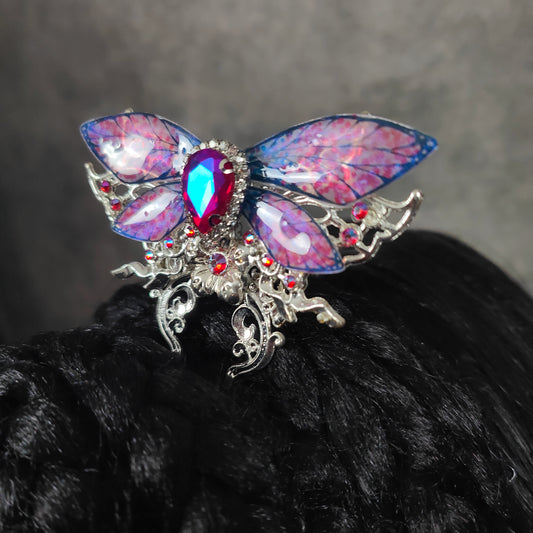 Dekorative Haarnadel mit Feenflügel in Rot/Blau